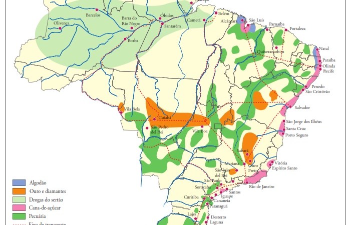 As regiões produtoras apresentavam uma dupla dependência em relação ao mercado externo – a colônia não havia alcançado um desenvolvimento industrial que exigisse a integração do mercado consumidor e era no mercado europeu que estavam nossos principais consumidores de produtos explorados.