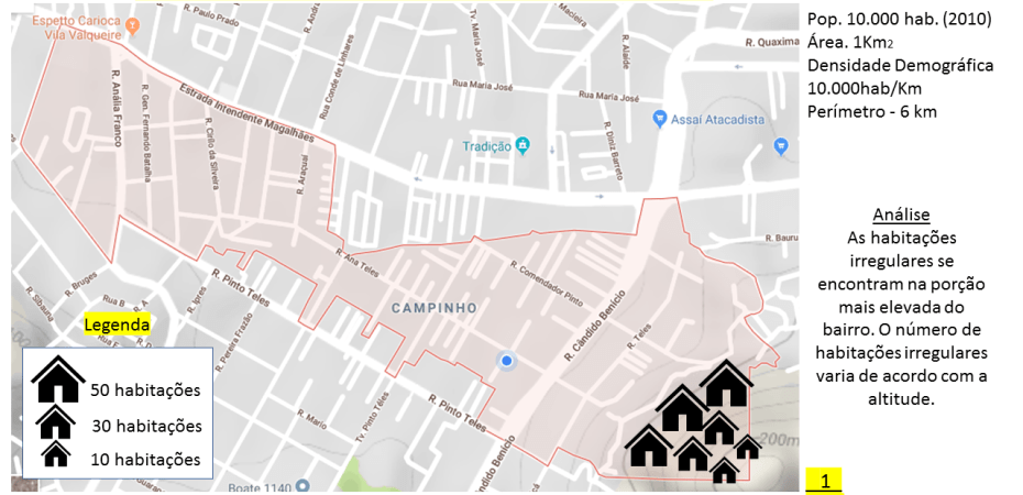 O trabalho consiste em produzir um mapa que deverá fundamentar uma análise sobre qualquer elemento geográfico (físico e ou antrópico) presente na escala do bairro onde o aluno mora. O mapa deverá conter: Título, Legenda, Fonte e a Escala.