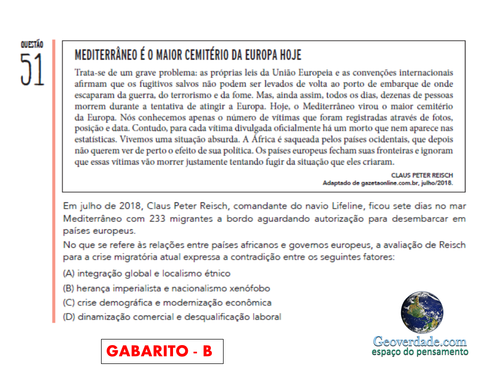 A linha “X” é a que mostra o as maiores taxas de crescimento demográfico continental. É notório que a África exibe as maiores taxas de crescimento vegetativo do mundo. A legenda confirma isso. A questão é facilmente respondida quando o aluno exibe a capacidade de ler informações de tabelas e gráficos. O único elemento geográfico que se exige é saber onde ficam cada uma das massas continentais.