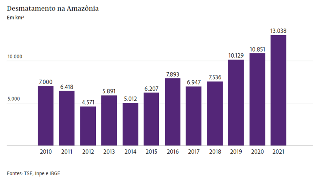 “De 2020 para 2021 o que vimos foi um aumento da área desmatada dentro do estado”, diz Bianca Santos, pesquisadora do Imazon (Instituto do Homem e Meio Ambiente da Amazônia). O Tocantins está em quarto lugar entre os nove estados da Amazônia Legal que mais aumentaram o desmatamento no período.