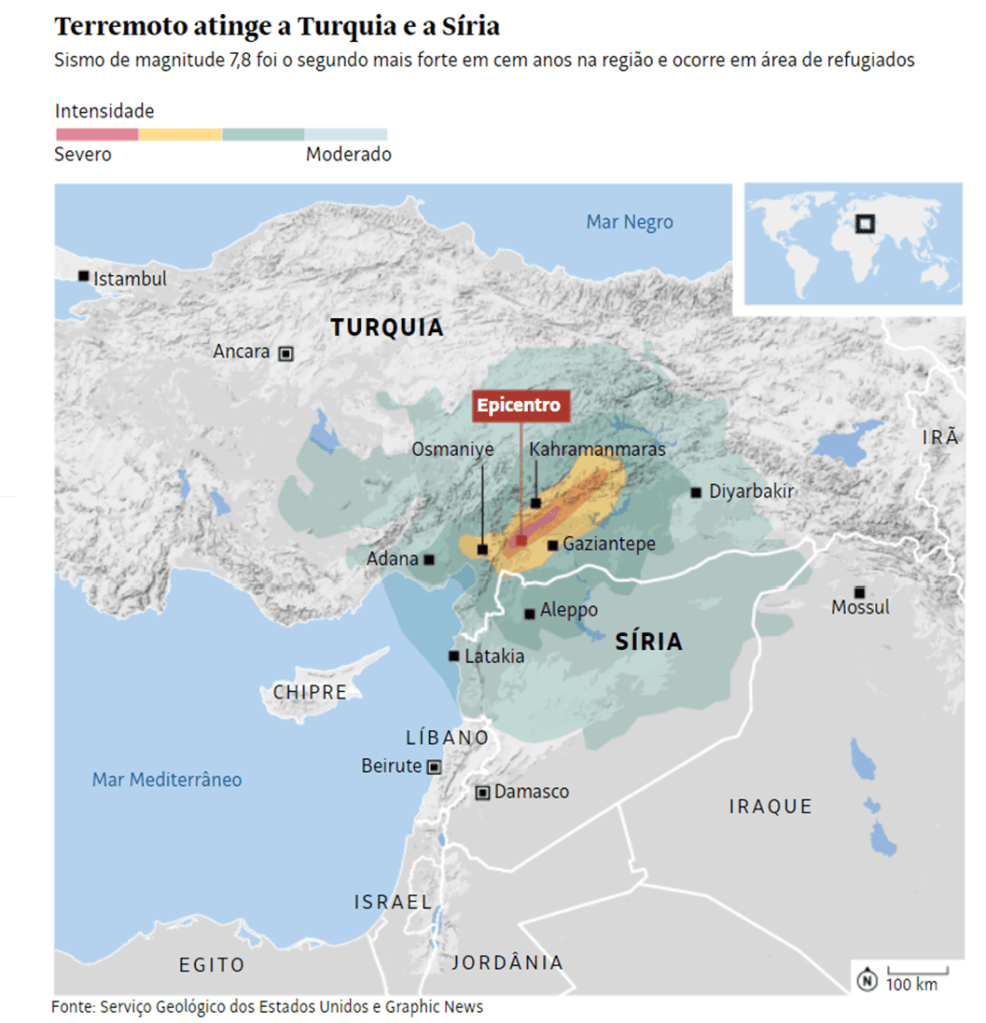 No caso do evento que causou danos na Turquia e na Síria foram dois fortes tremores seguidos.
