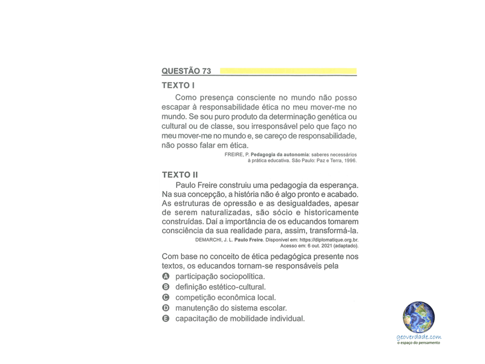 5 nov 20235 nov 2023 Prof. Luciano Mannarino ENEM 2023 – GABARITO COMENTADO HUMANAS (EM PROCESSO) D A A D E A D C D C A B A B C D D E B A E A B A E C A B A A C E C D A E C B D A A B C D Ajude a divulgar...Tweet Clique para enviar um link por e-mail para um amigo(abre em nova janela) E-mail Compartilhar no Tumblr Clique para compartilhar no WhatsApp(abre em nova janela) WhatsApp Curtir Carregando... Relacionado