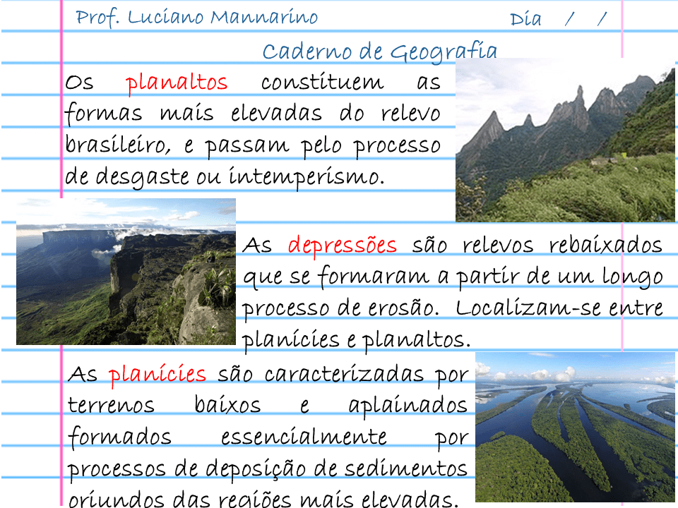 2.Diferencie planaltos, planícies e depressões no contexto do relevo brasileiro, destacando o processo predominante em cada um.
