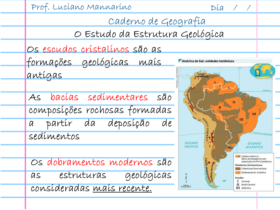 3.Por que o Brasil não possui grandes cadeias de montanhas recentes, como os Andes? Relacione sua resposta com a estrutura geológica do território.