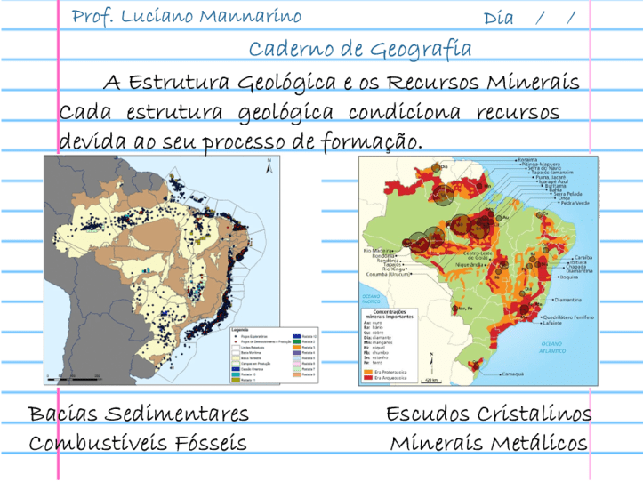 4.Analise como a formação geológica do Brasil contribui para a diversidade de recursos naturais, diferenciando áreas de mineração e de energia.