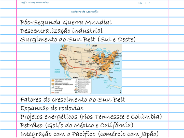 6. Explique a relação entre infraestrutura (rodovias e energia) e a expansão industrial para o sul e oeste dos EUA.